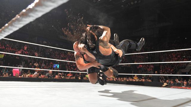 یک بیگ البو میزنه ، تگ میکنه ، رالینز چند کیک میزنه ، بازهم کین وارد میشه اما با سوپلکس رایبک متوقف میشه.