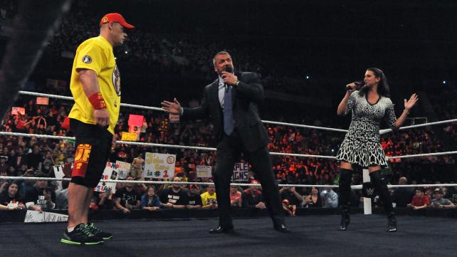 درقسمت بعد آئتوریتی متشکل از تریپل ایچ و استفنی مکمن وارد میشن و تقریبا واکنش خوبی میگیرن.