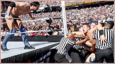 اختیار می گیرد. یکی از ماتادور ها تگ میکنه در حالی که سـزارو یک سوپلکس فوق العاده به بیگ ای از آپرون می زند. در این لحظه حالا رینگ شلوغ میشه و استار ها به رینگ میان.
