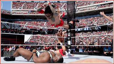 انجام می دهد ! سپس هم دیگر همراه کننده این مسابقه یعنی ناومی به بالای تاپ روپ می رود و یک دایو عالی رو همه می کند. بیگ ای هم در